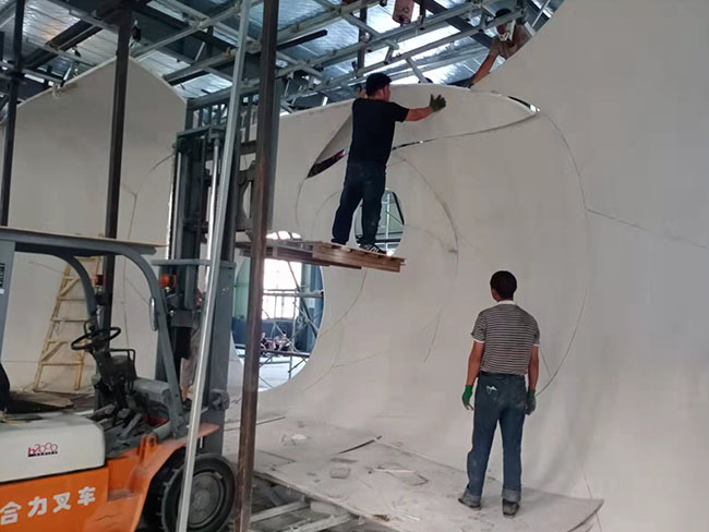 我公司工廠占地面積5000多平方米,公司具有經驗豐富的產品研發、設計、深化、生產、安裝、管理團隊,可為客戶從裝飾設計、產品深化設計建模、產品生產、現場安裝施工等一整套服務。